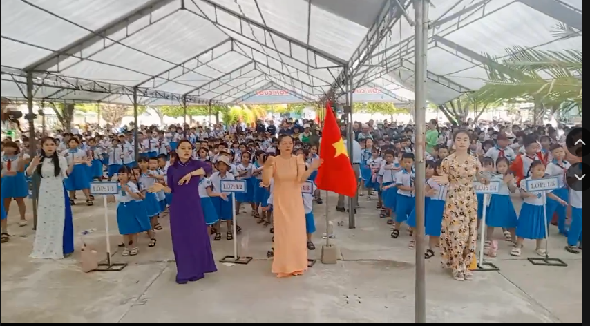 GV và HS tham gia múa hát tập thể sau khi buổi khai giảng kết thúc