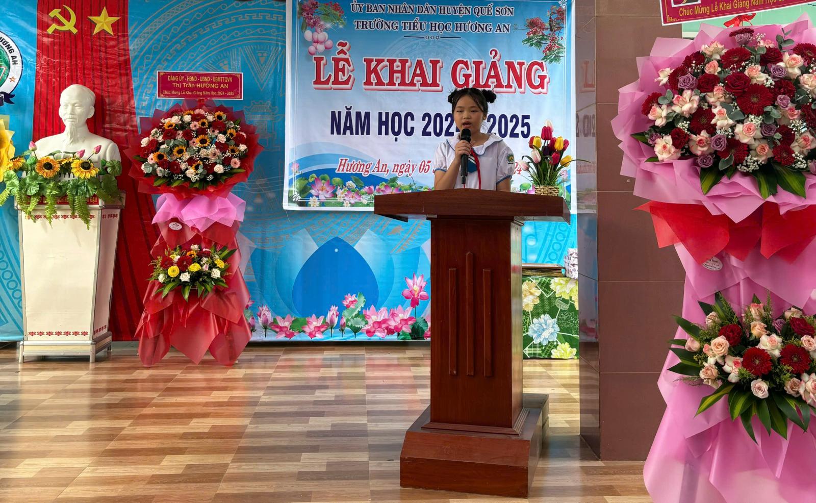 Tại buổi khai giảng nhà trường được lãnh đạo các cấp tặng những lẳng hoa tươi thắm để chúc mừng năm học mới 2024-2025