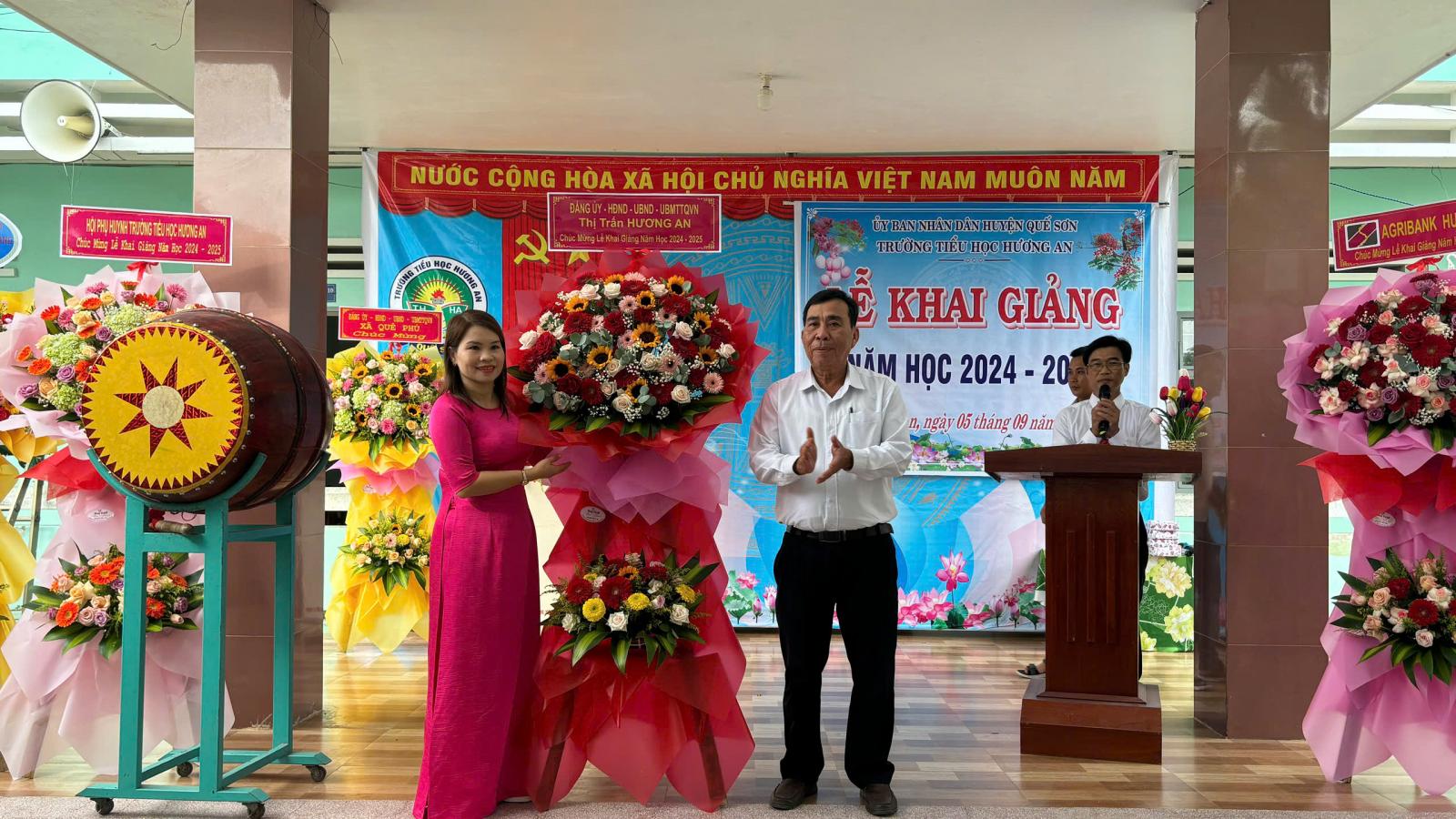 Về dự buổi khai giảng có thầy giáo Lê Tin - Phó trưởng phòng giáo dục và đào tạo huyện Quế Sơn; ông Đinh Văn Châu- Bí thư Đảng ủy thị trấn Hương An; ông Nguyễn Cảnh Năm Phó Bí thư- chủ tịch UBND Thị trấn cùng với các ban ngành , hội đoàn thể, ...hội cha mẹ học sinh nhà trường đã đến dự và chung vui lễ khai giảng.