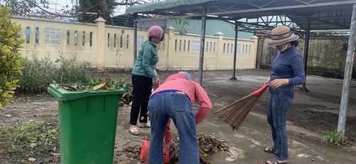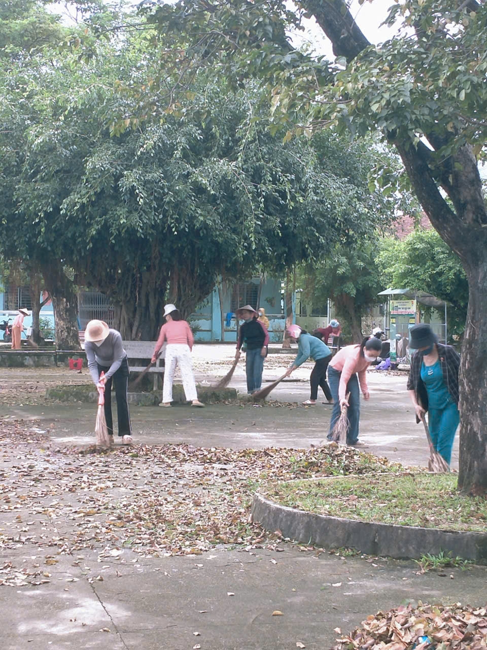 Hình ảnh CBGVNV dọn vệ sinh sau mưa lũ