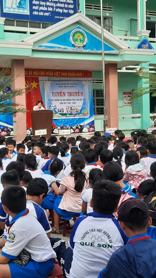 Liên đội trường Tiểu học Hương An phối hợp với Công an xã Xuân Phú đã tổ chức buổi ngoại khóa với nội dung tuyên truyền Luật giao thông đường bộ cho các em học sinh trường Tiểu học Hương An.