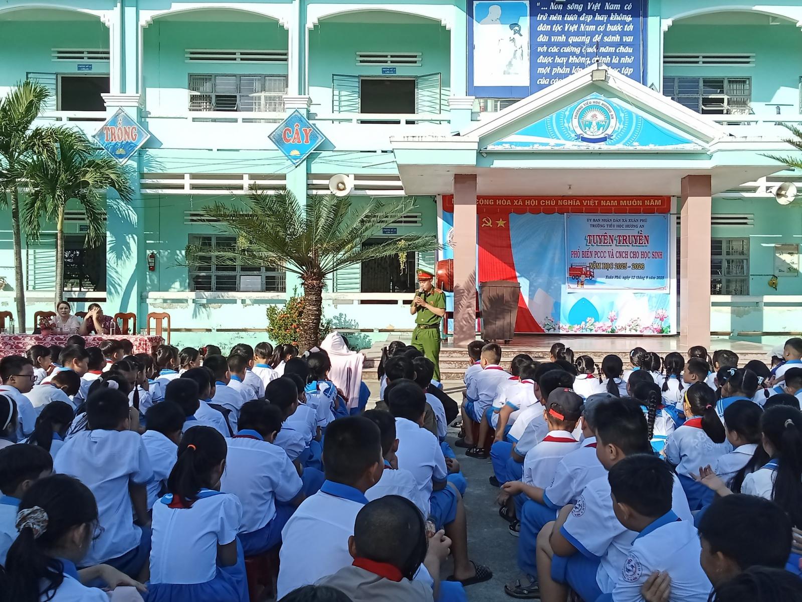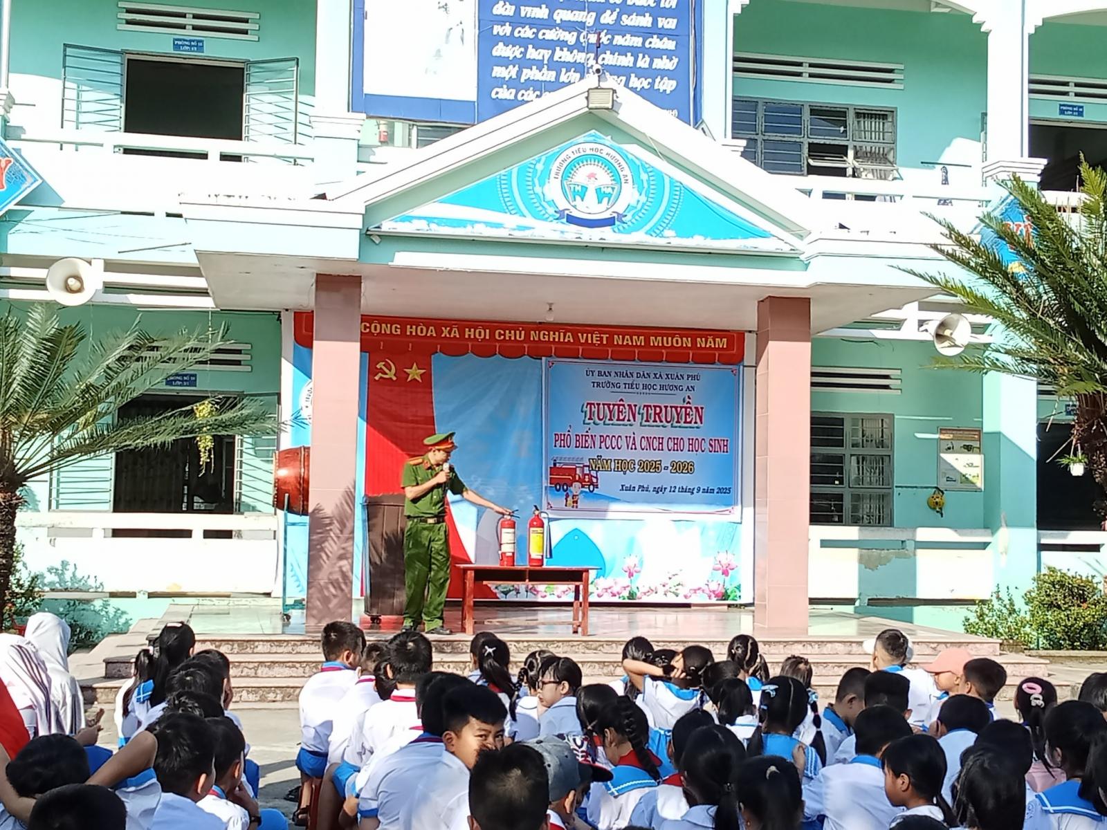 Đại diện công an thành phố Đà Nẵng- Thiếu tá Dương Minh Phụng và Thượng uý Hồ Viết Dũng, Cán bộ đội công tác PCCC và CNCH đã chia sẻ cách phòng chống cháy nổ cũng như những kĩ năng cần thiết để xử lí tình huống hoả hoạn xảy ra. Buổi tuyên truyền thực sự sinh động khi thầy cô giáo cùng các em lắng nghe hướng dẫn.